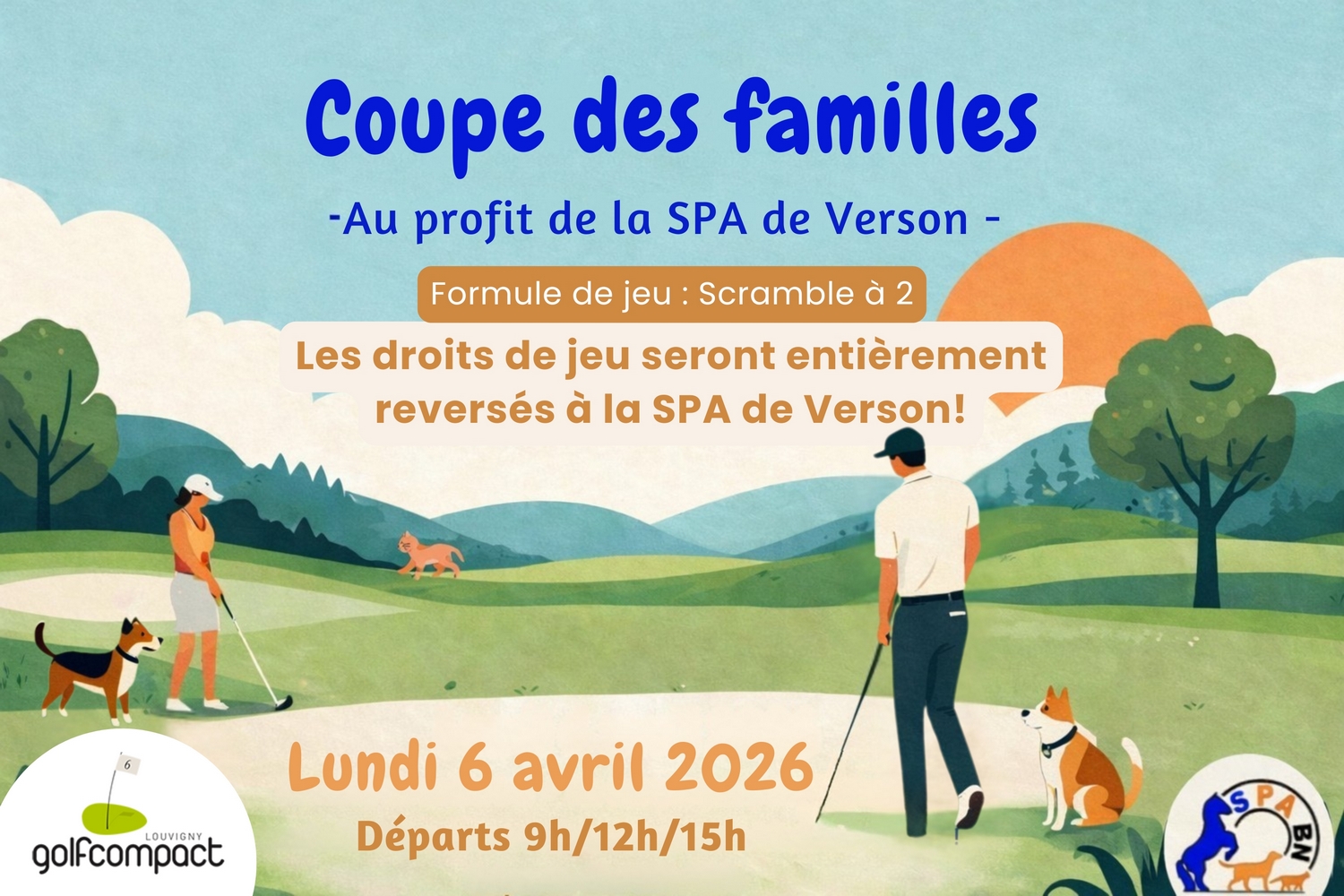 📅 Lundi 6 avril, le Golf Compact de Louvigny accueille la Coupe des Familles : une journée conviviale à vivre en famille ou entre amis, placée sous le signe du sport et de la solidarité.