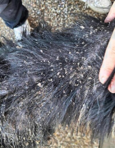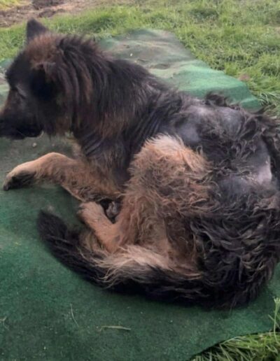 Comme vous pouvez le voir sur ces photos, lorsque nos bénévoles se sont rendus sur place, ils ont découvert ce pauvre loulou contraint de vivre dehors 24h/24, sans aucun abri. Maigre, marqué par des problèmes de peau, Orace était dans un état préoccupant….