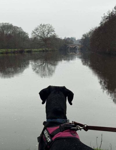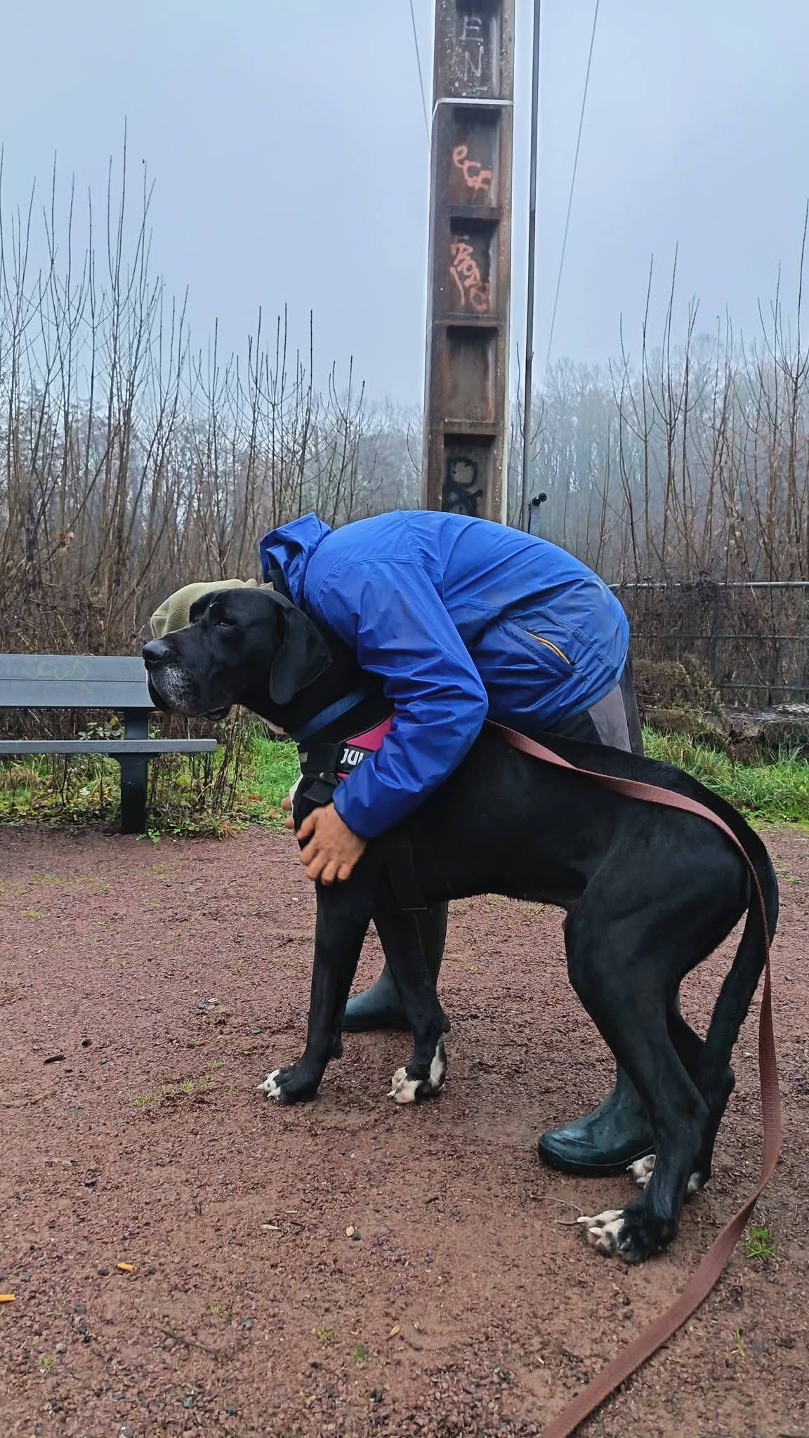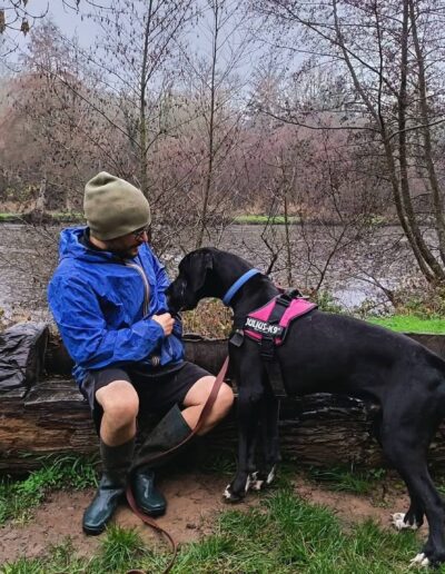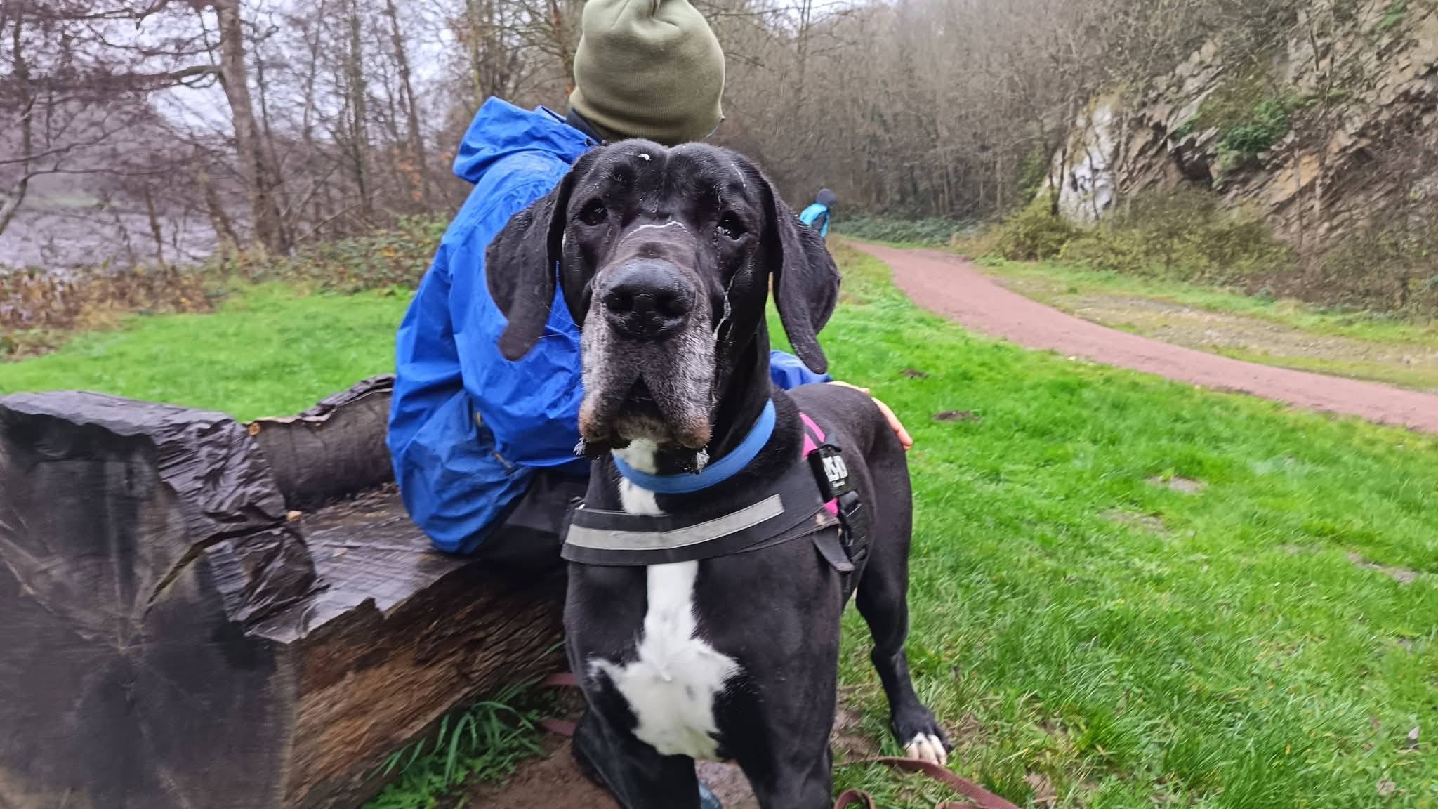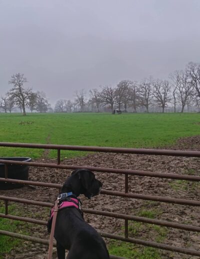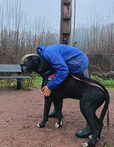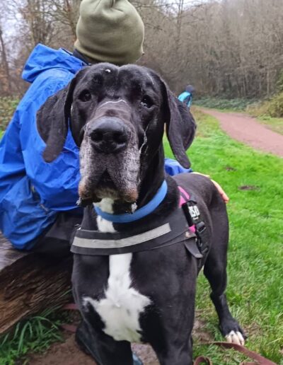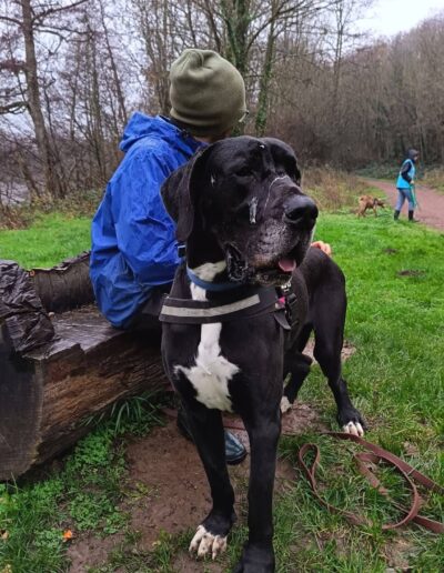 Ringo peut tolérer des chiens de grande taille lors des balades, mais nous ne le placerons pas dans un foyer avec d’autres animaux.